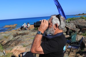 The theodolite teams have a further visual range (out to about 10km) and are able to collect detailed information. Currently the theodolite team focuses effort on the main migratory period, while the D-CALC volunteers at Pt. Picquet collect data over a wider temporal range. Together, this gives us the “big picture” in terms of whale activity in Geographe Bay. We will be able to create a very detailed picture of how the southwest region is utilised by blue and humpback whales, allowing us to identify significant habitats and advice on any measures necessary to minimise human impacts on these amazing cetaceans. Ron enthusiastically described a summary of the season’s sightings thus far, and invited Dr Chandra Salgado Kent (the theodolite team leader) to describe the workings of the theodolite project.