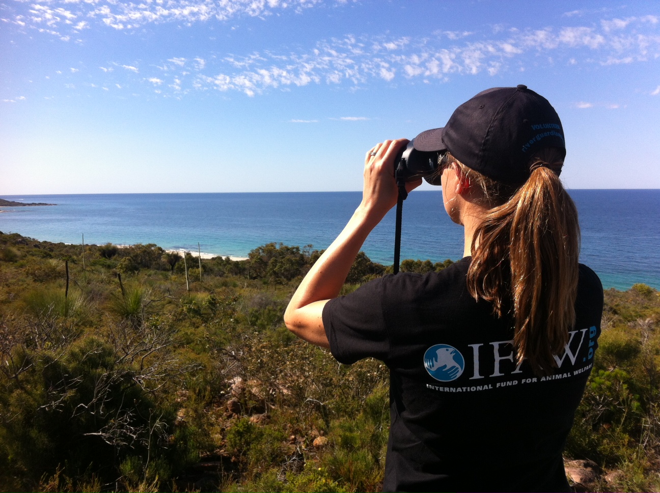 Following this, we have now been joined by Sharon Livermore, Marine Campaigner at IFAW. Sharon has been participating in the theodolite tracking as an observer and will also be joining Chris Burton (WWR) and Chandra Salgado-Kent (CMST) out on Chris’s research vessel Bluey to conduct transect surveys. Judging from her enthusiasm up the hill, whale spotting makes a nice change to the office!